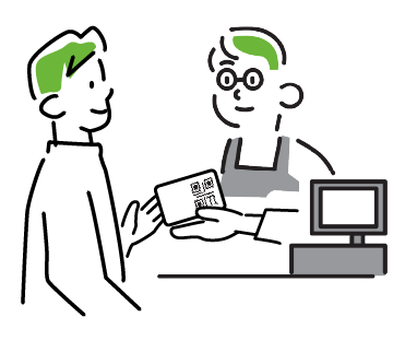 アプリもしくは専⽤カードに記載された「マイQRコード」を現地端末にスキャンさせると付与