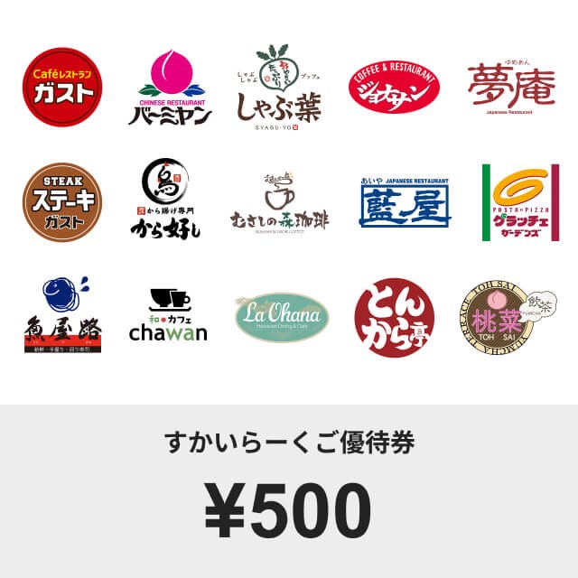全国約2,600店舗以上のすかいらーくグループ各店舗でご利用いただける「ご優待券」です。1円単位でご利用可能です。